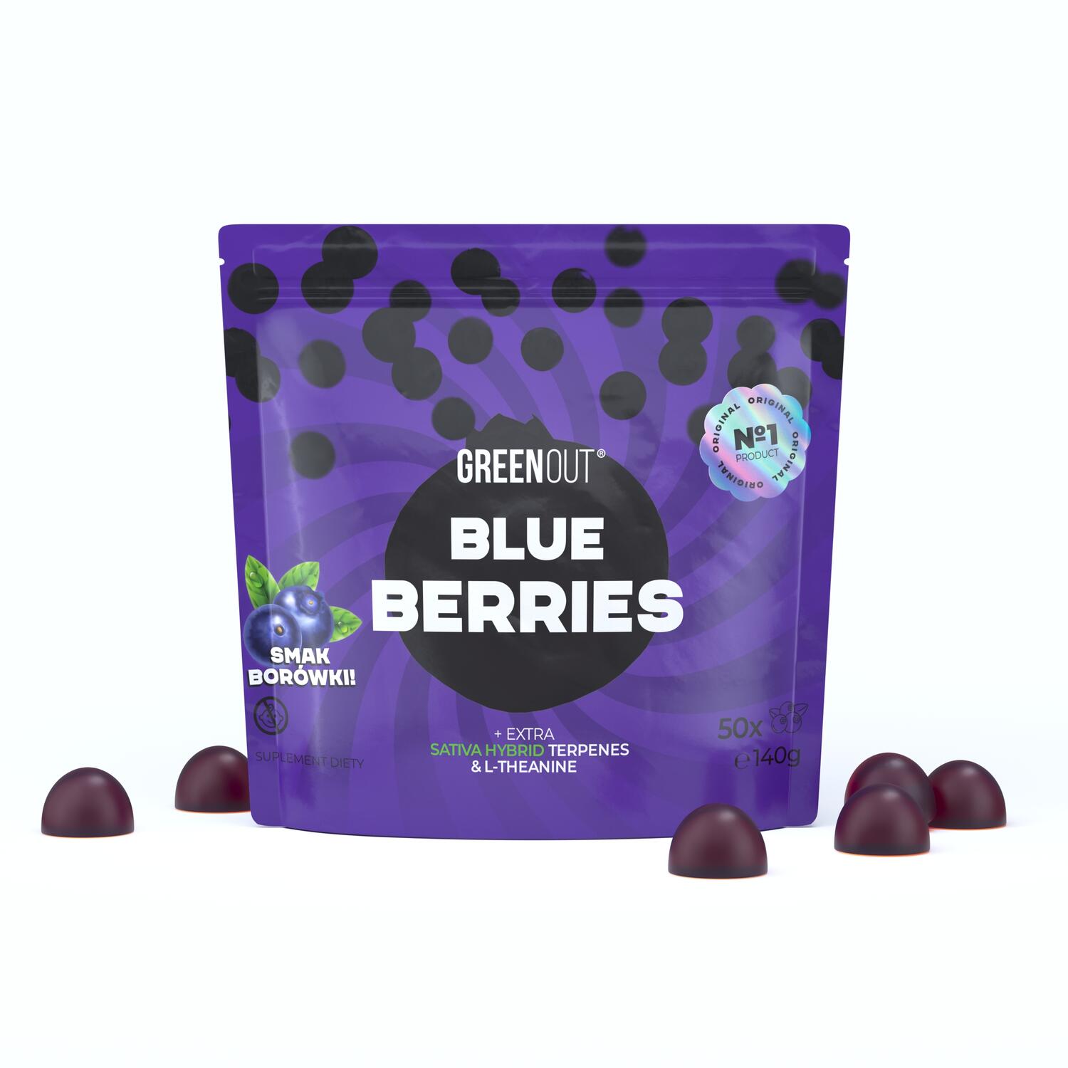 Żelki Green Out® Blueberries (Jagoda) – Dyskretny „Energy Vibe”. Najwyższej jakości olej konopny (10 mg / porcja) w formie jagodowych żelków. Ta wersja została dodatkowo wzbogacona o profil terpenowy Sativa Hybrid (Durban Poison) oraz L-Teaninę. Zaprojektowana dla kreatywnego relaksu, dobrego humoru i energii. Bez uczucia „zmuły”.